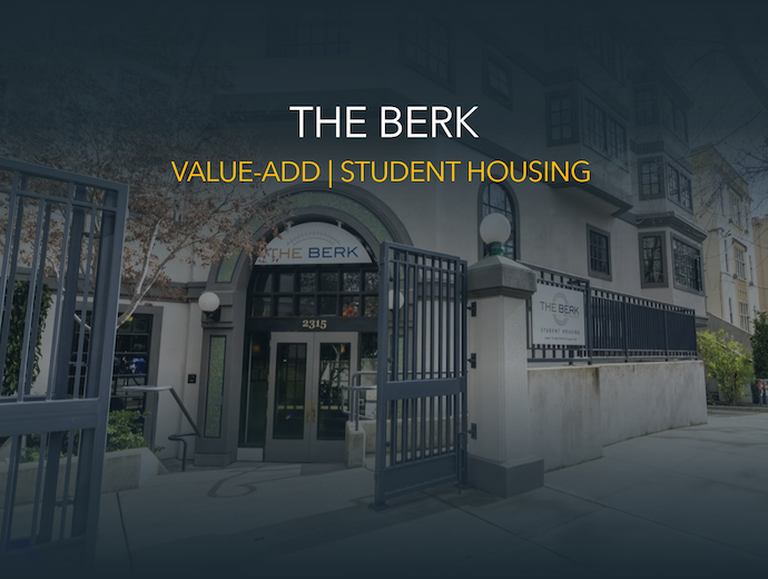 With over 20,000 sf. of luxury living spaces and unrivaled hospitality and amenities, Prospect was transformed from a neglected student-housing property—with few tenants at the time of acquisition— into the premier, up-scale student co-living community within walking distance of UC Berkeley.